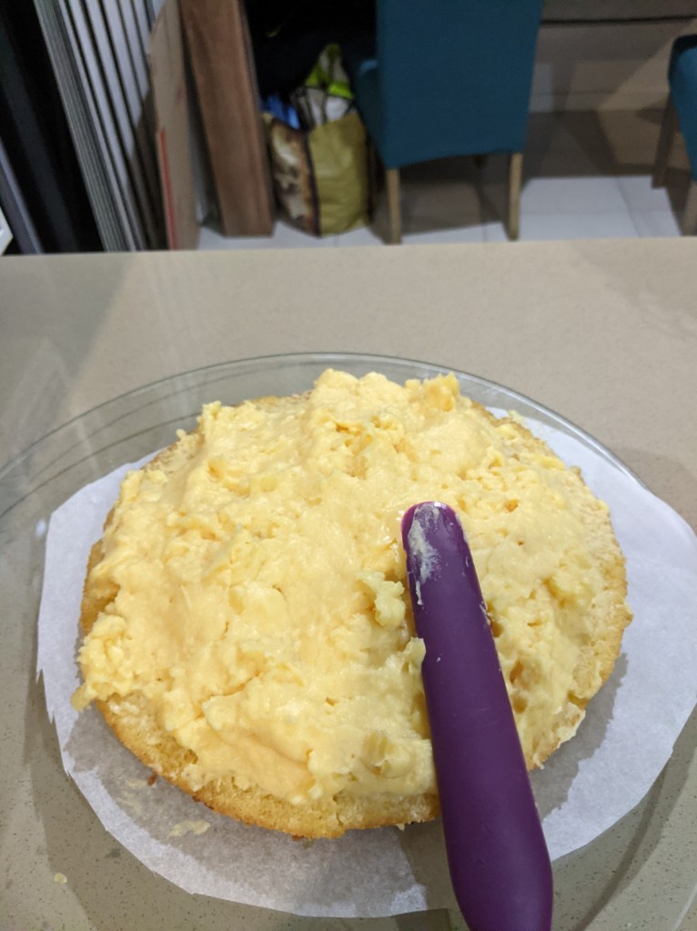 I used the custard from the box mix. using the same amount of milk as recommended on the box, but doubling the powder to create a thicker texture. I also used 4 tbsp of thicken cream to keep this mixture rich and spreadable. Once this was ready I cover the custard with plastic wrap to prevent a skin from forming on the top and placed in the fridge to cool.
