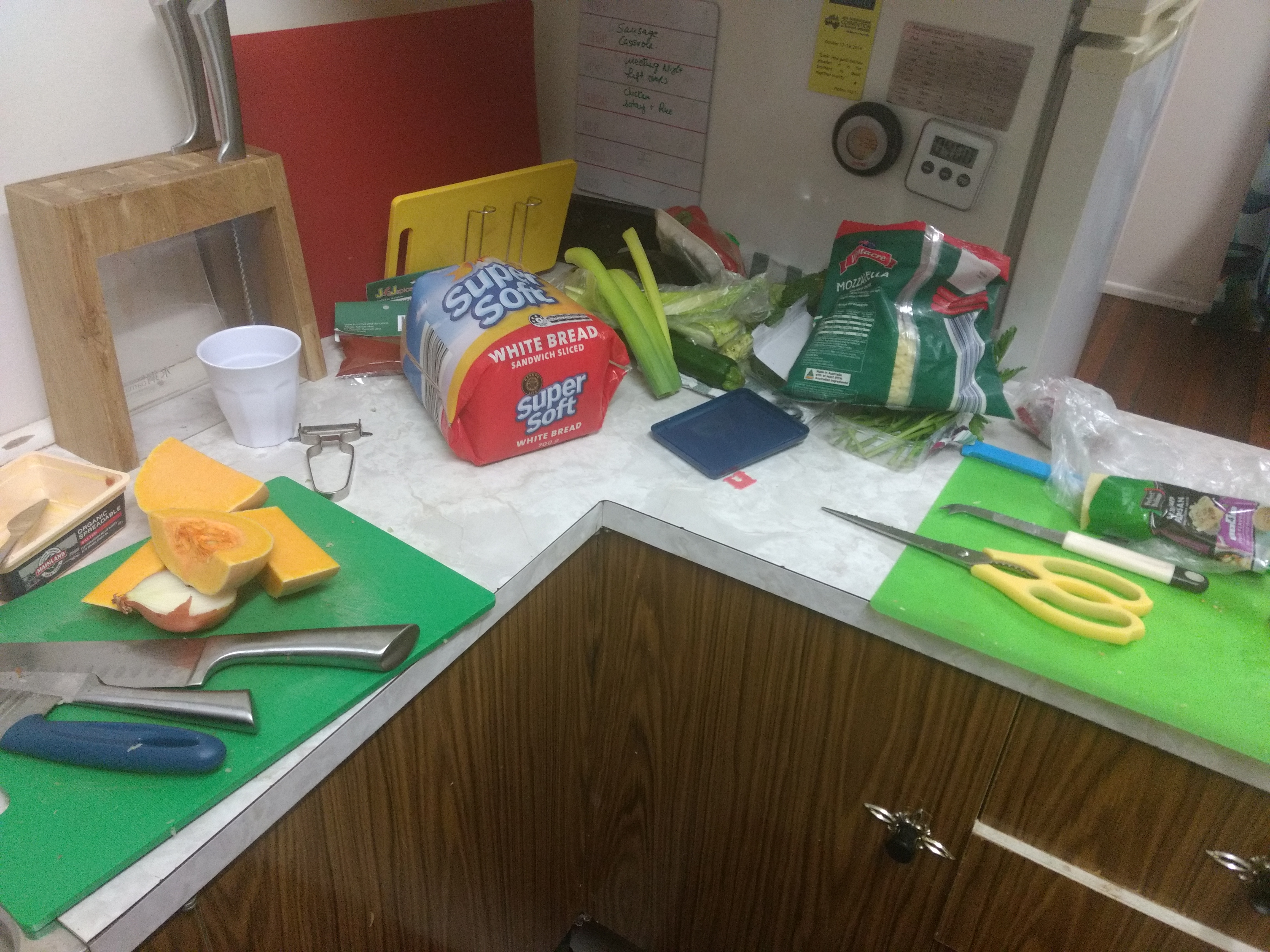 One person in the kitchen at a time. If I’m cooking, everyone must leave me to it, the kitchen was so small there was no room for helpers.