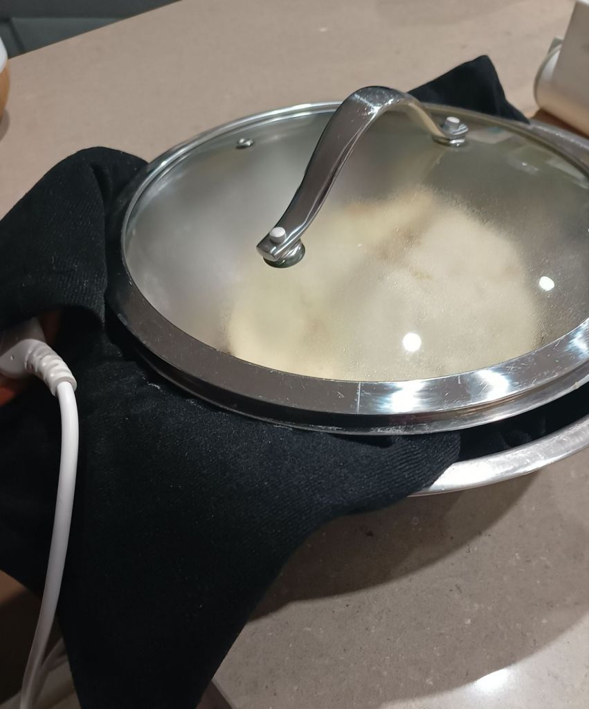 Try this proofing rig and let me know what you think in comments. My dough is double the size it was in less than 20 minutes.