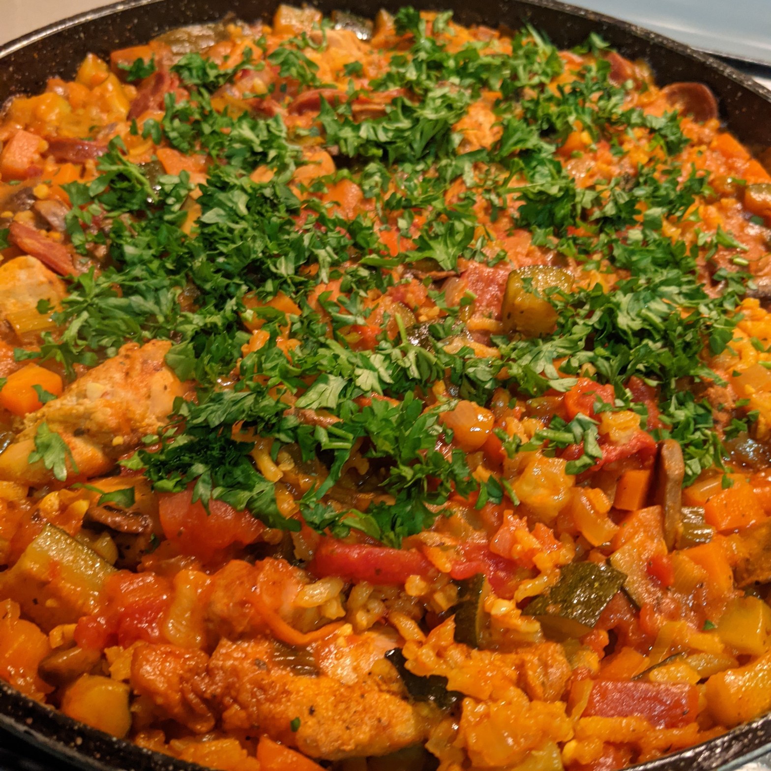 This is a dish I discovered while befriending South Americans in the USA. It reminds me of a Palau and African jaloff rice. Usually made with a mixture of seafood like clams and shrimp, which I’m allergic to, this version is made with chicken and churizo, also acceptable. This meal can be Vegetarian if youContinue reading “Paella”