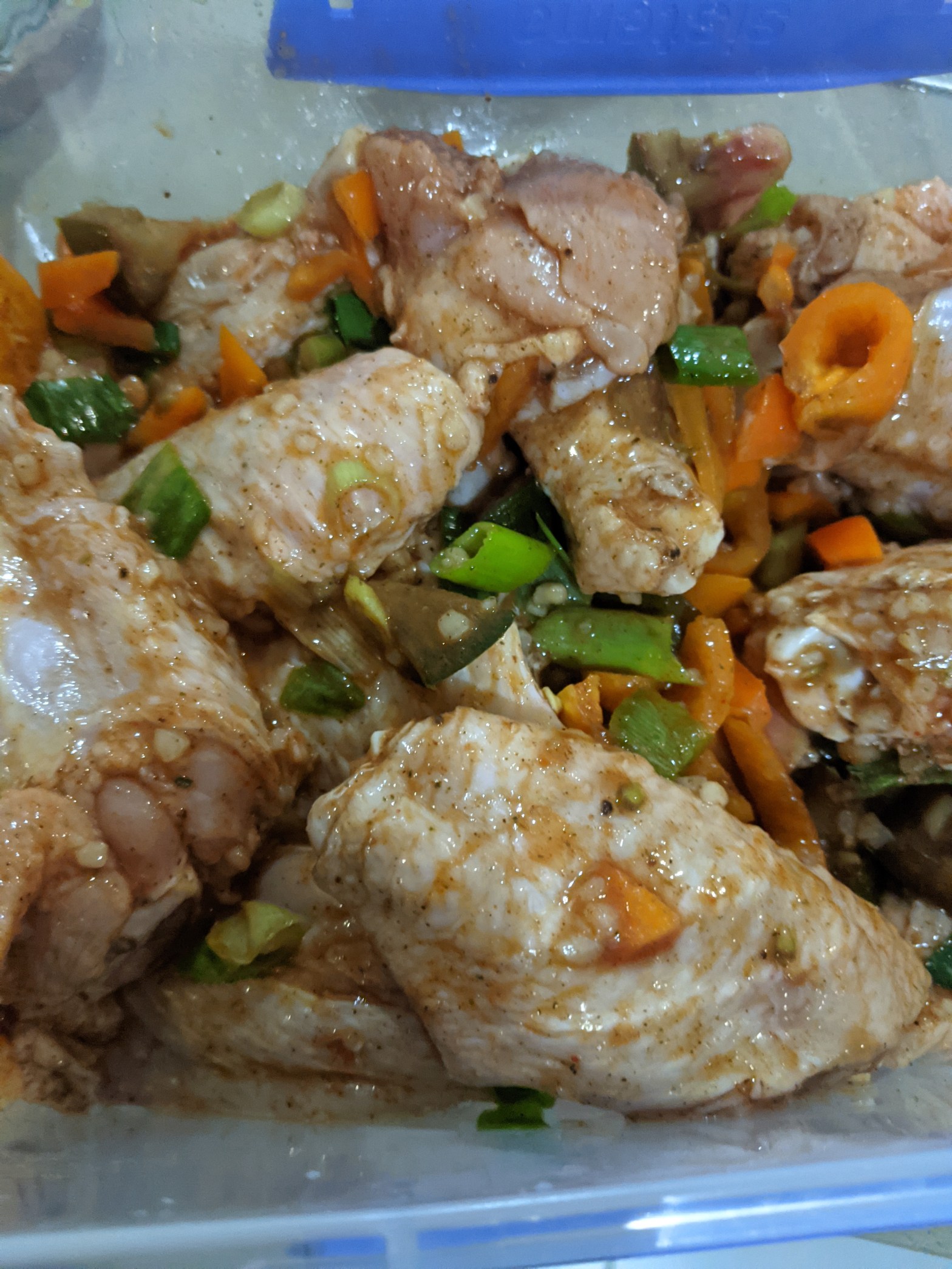 Remember my jerk seasoning I made, used it to prepare these soon to be oven made barbecue jerk chicken wings. 24 hours to marinate…stay tuned. Here’s the finished product